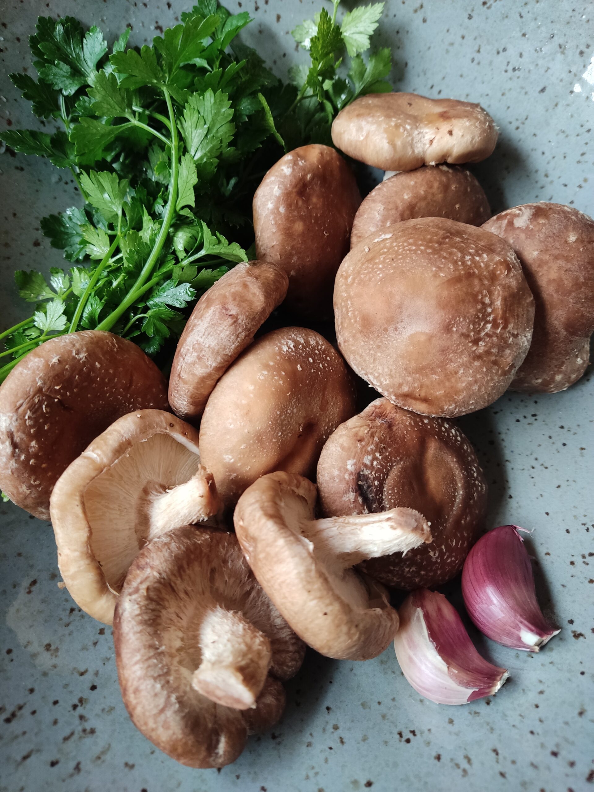 moho a base de creme de leite, alho e salsa com cogumelos shitake